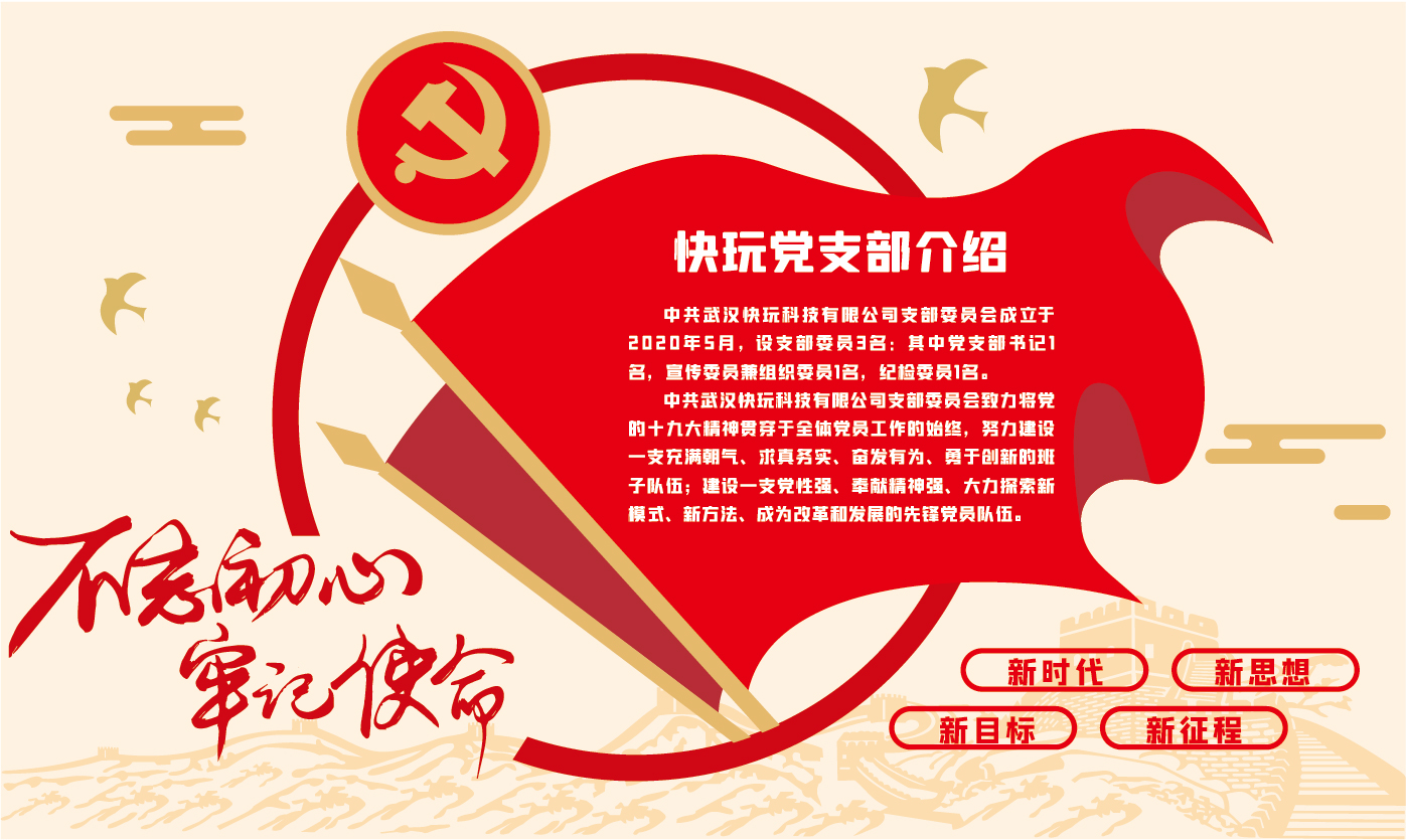 05月 / 快玩科技黨支部正式成立,設(shè)支部委員3名:其中支部書(shū)記1名,宣傳委員兼組織委員1名,紀(jì)檢委員1名。